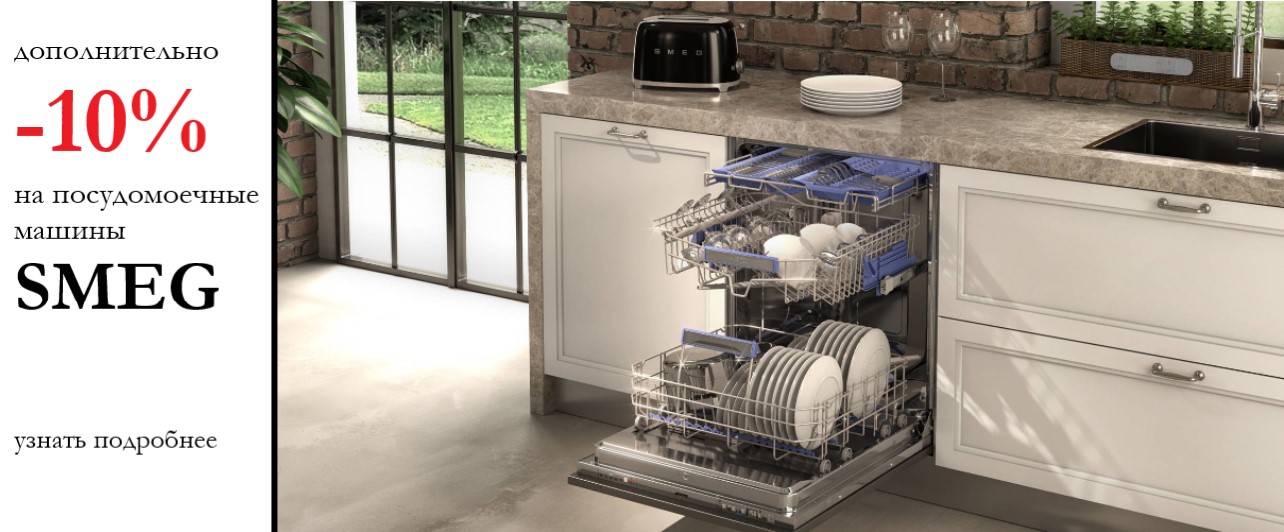 При заказе посудомоечной машины SMEG предоставляется дополнительная скидка 10%.